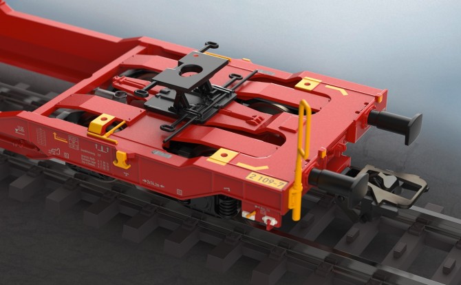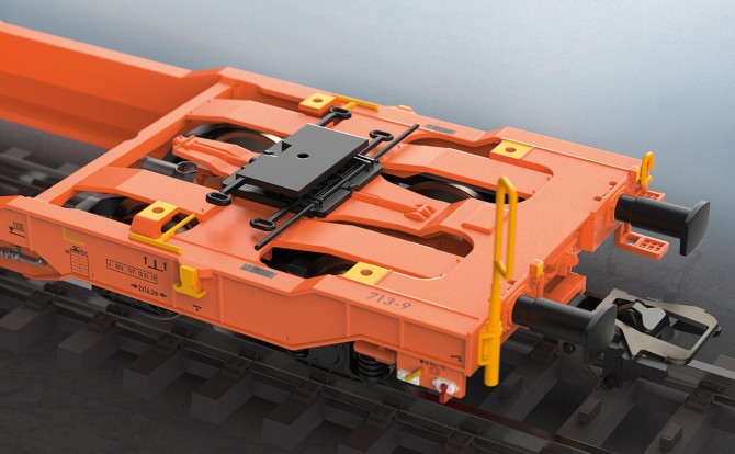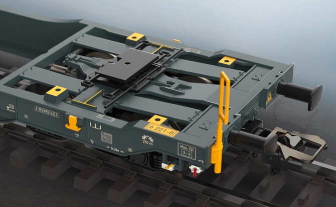 Detailansicht auf das Mitteldrehgestell eines MFD-Wagens. Copyright: MFD Rail GmbH