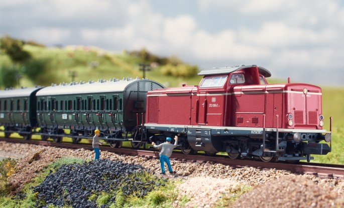 Das Modell der V100.20 erscheint zusammen mit einem Set aus 4 Einheitsabteilwagen exklusiv in einer einmaligen Serie für mhi-Händler.
