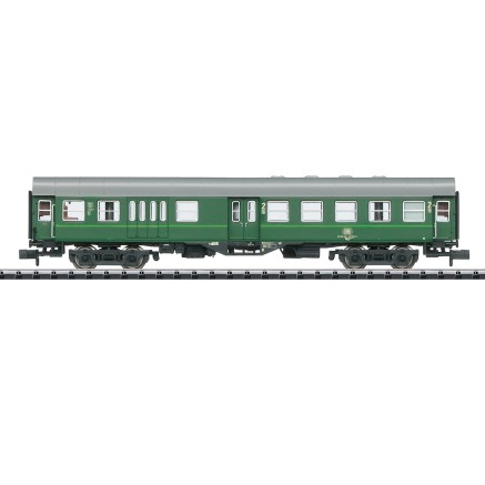 Das neu konstruierte MINITRIX Modell stellt den Betriebszustand um 1985 dar. Der Wagen trägt die damals aktuelle Farbgebung der Schnellzugwagen. Das Modell besitzt Kurzkupplungskinematik und kann mit einer Innenbeleuchtung nachgerüstet werden.