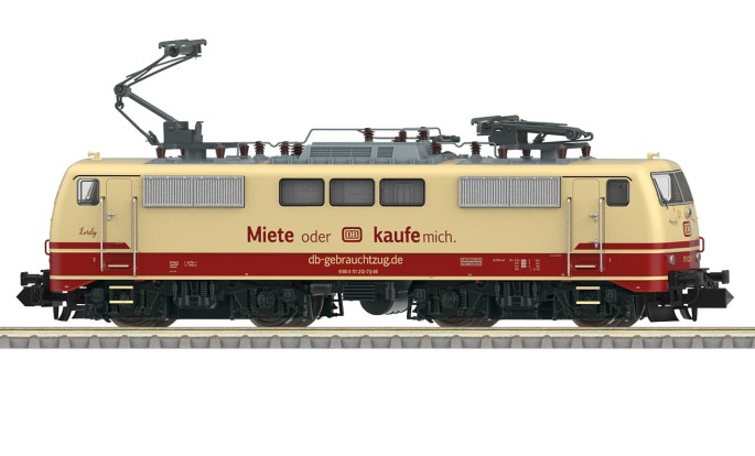 Die 111er rollt in zwei Versionen ins MINITRIX Programm. Die Art. 16721 bildet den Ablieferungszustand der Lok 111 102-0 aus dem Jahr 1974 im Farbschema ozenblau/elfenbein ab.