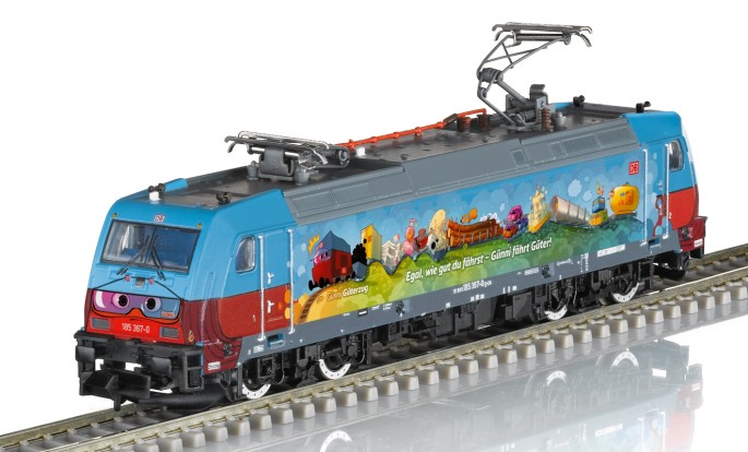 Auf der bunt gestalteten Seitenwand der Lok ist groß zu lesen: "Egal wie gut du fährst - Günni fährt Güter". Vielleicht auch eine kleine Anspielung darauf, dass Güter auf der Schiene immer besser unterwegs sind. Mit den großen Augen auf der Front und den schönen Zeichnungen auf den Seitenwänden der Lok ist diese 185er ein echter Hingucker, sowohl im Vorbild als auch auf der Modellbahn.