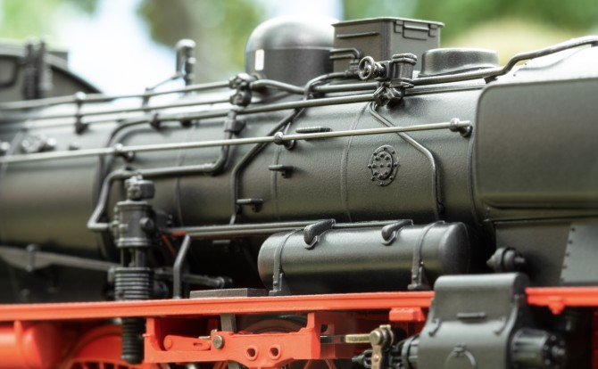 Oben: schwarze Kesselringe wirken eher unscheinbar, sind aber ebenfalls ein Unterschied zur Schwesterlok.